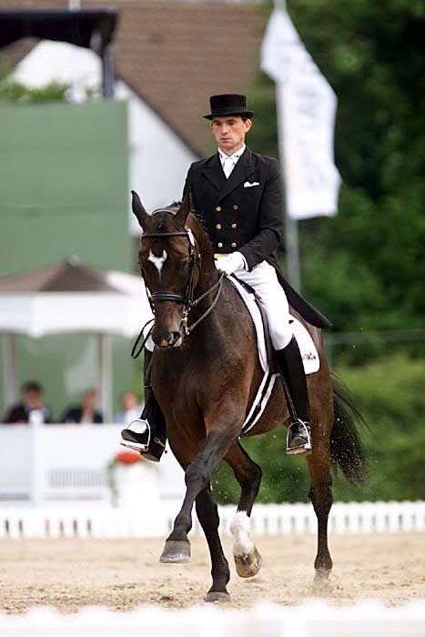 Tauskilla on kiva suku; Se omaa tasan yhden polven sukua netissä, mikä on jalostuksen kannalta hyvin näppärää. Molemmat sen vanhemmista ovat hyvin kilpailleita ja menestyviä ratsuja, joten on hyvin todennäköistä, että Tauskikin tulee joskus joissain kisoissa jotain pistesijoja saamaan.. ;) Tauskin isä on komea, tosin tällä hetkellä sivuilla olevista kuvista päätelleen ilmeeltään vähän sammakkomainen, rautias ori Gondore, eli lempinimeltään iskevästi ja luonteensa huomioiden osuvasti Konna. Luonteeltaan Konna onkin karsinaolosuhteissa vähän hösö, ei sitä oikein kiinnosta seistä paikallaan, ja ketjunvarressakin voi aina vähän pyöriä. Ratsastettavuudeltaan Konna on hyvä, se on eteenpäinpyrkivä ja sillä on kapasiteettia, mutta ori kuitenkin tylsistyy melko helposti; Liika toisto on hyvä jättää tämän oriin kanssa pois, tai voi huomata, että se korkeassa muodossa hyvin liikkuva hevonen muuttui kilometrin pituiseksi pukittelevaksi matoseksi. Jälkeläisiä oriille on siunaantunut Tauskin lisäksi kaksi, mutta ori on vasta siirtymässä jalostuskäyttöön; Kisatuloksia sen ei ainakaan tarvitse enempää haalia, 56 KRJ-sijoitusta sekä yksi KRJ-Cup sijoitus ovat kyllä sen verran kunnioitettava saavutus. Konnan isä on komea ja suuriliikkeinen saksalaisori Davis'd GER. Oriin kilpailu-ura ei startannut auvoisesti, joten se kilpailee vieläkin kouluratsastuksessa kotimaassaan Saksassa, vaikka sitä voitaisiinkin jo kutsua varhais-sennuksi. Minun mielestäni tämä on varsin ymmärrettävää, Davis’d kun kilpailee intermediaire ja gran prix-luokissa, joiden taso on Saksassa huomattavasti korkeampi kuin täällä Suomessa - Menestyminen on siis vaikeampaa. Jalostuspuolella Davis’d on vielä hyvin tuntematon nimi, ja sen siitosuran on suunniteltu alkavan vasta muutaman vuoden päästä; Tällä hetkellä se vaikuttaa vain suomalaisen poikansa Konnan ja tämän jälkeläisten kautta. Konnan emä on eksoottisen nimen omaava tamma Lesleighn. Tamma on osoittautunut paremmaksi periyttäjäksi kuin kilpahevoseksi, vaikka siltä löytyykin useita sijoituksia ja pistesijoja myös vaativista luokista. Lesleighn on väritykseltään hurmaava, harvinaisesti täysin puhdas musta, ellei sen läsiä ja puolisukkia takajaloissa lasketa, ja vielä himotummaksi sen jalostuksen kannalta tekevät sen ominaisuudet periyttää omia parhaita puoliaan jälkeläisilleen, muunmuassa hyvää rakennetta, eikä kenelläkään tamman jälkeläisistä tule varmaankaan olemaan yhtä ainoaa rakennevirhettä, ellei isä ole tökerö muuli, sekä hyvää käsiteltävyyttä. Nykyisin tamma viettää tosin jo eläkepäiviä, vapaana tuottamasta varsoja. Tauskin emä on Heidin tumma tamma Ciant Mercury, eli tutummin Silja. Heidin hevoseksi suhteellisen vähän kilpaillut, tällä hetkellä koulutustasoltaan vaativan A:n paikkeilla tanssiva hevonen on kuitenkin jo kerennyt pyöräyttämään neljä jälkeläistä, siis Tauskin lisäksi kolme: Kaikki tammoja (tätä kirjoittaessa Tauski kaikenlisäksi katraasta menestyinen ;)). Luonteeltaan Silja on hyvin vaativa, eikä ainakaan mikään aloittelijoiden ratsu - Selässä saa junnata viikon päivät täysillä treenaten, jotta tamma vihdoinkin alkaisi myödätä niskastaan ja kulkea siinä himotussa korkeassa muodossa. Kouluratsastuksen saralta on tammalle kertynyt 14 sijoitusta, määrä on kuitenkin tuleva nousemaan. Siljan isä on hannoverori Budapest, ulkomuodoltaan upeaakin upeampi punertavan ruunikko, jonka päätä koristaa leveä läsi, sekä jalkoja korkeahkot sukat; Ooh, meinasin pyötyä onnesta, kun minun ja Heidin Saksanmatkallamme kävimme tapaamassa hevosia oriin kotisiittolalla, ja Budapest vilkaisi minuun syvänviisailla silmillään. Oriilla on myös mitä suurenmoisimmat liikkeet - sen ravi on irtonaista ja lennokasta, ja nöyränä ja kuuliaisena ratsuna se venyttää ja kokoaa itseään näyttävästi äärimmäisyyksiin asti, voih mikä unelmaori! Kilpailu-uraa korkealla tasolla ori tosin vasta aloittelee, sillä sen kanssa on todettu siitoskäytön ohella ikäviä takapakkeja viime vuosina; Sairastumisia ennen tärkeitä kisoja, kisaajan puuttumista yms. Ori tulee kuitenkin varmasti vielä järisyttämään Saksan kisaratoja - Tavoitteet ovat aina grand prix-tasolla, nyt paahdetaan tosin vielä vaativassa A:ssa. Siljan emä on hyvin tavallinen siitostamma Ciant Memory: Upeaan mammamaisuuteen lisättynä lapsirakkaus, mukava ratsuhevoselle sopiva rakenne ja edes jotain, mitä se sitten voi periyttää jälkeläisilleen; Kilpailulla ei ole niinkään väliä, kunhan tulee hienoja jälkeläisiä hienoista oreista, eikä tamma satulan nähdessään saa hepulia. Memory onkin toiminut lähinnä siitoeläimenä, ja se on periyttänyt ihan mukiinmenevää rakennettaan (pari sertiä on jostain heltynyt) ja kilttiä luonnettaan. Kilpailu-urallaan tamma oli todella kapasiteetikas, ties minne tasolle asti se olisi voinut yltää - mutta kun saatiin hyväksytty tulos vaativasta B:stä, se sai riittää ja Memory siirtyi mukavaksi maastoilukaveriksi ja esimerkiksi nuorempien hevosten koulutukseen.